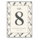This wedding table card features a modern, minimalist design with a large, bold numeral "8" centred on a light beige background. The layout is clean and elegant, using a mix of script and sans-serif fonts to create a sophisticated look. Surrounding the central rectangle are abstract brush strokes in black and grey, adding texture and visual interest without overwhelming the simplicity of the design. Perfect for weddings or formal events, this card combines understated luxury with contemporary style, making it both practical and aesthetically pleasing.
