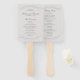 Elegant wedding program hand fan featuring two simple hand drawn pencil sketched twigs with leaves surrounding your details and your names in script over a neutral grey background. The background may be changed to any colour you wish. If you will be having an outdoor wedding, these hand fans are a great to offer to your guests to help them keep cool and also make a great souvenir.