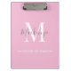Elegant Grey Pink Personalised Monogram Name Clipboard