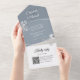 Elegant Grey QR Code Monogram Wedding RSVP All In One Invitation