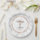 Elegant Grey Rose Gold Palm Tree Marble Wedding Paper Plate