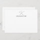 A beautiful correspondence note card perfect for personal or business purposes with your first or last name initial in a big light grey decorative script and full first or last name in a complementing classic serif font in black. The reverse side displays your full name, address and contact information at the bottom of the card.