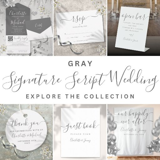 Elegant Gray And White Signature Script Wedding Designed by Thisisnotme Designs