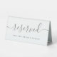 This table tent sign is the perfect size for our tables and easy to read. I also like the material it is made with and no worries about it falling or sliding. Just perfect! Everything about this card is perfect. I like that it says what we want on the front and on the back we were able to personalize a message for our guests.