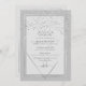 This elegant and modern quinceañera birthday party invitation is ideal for a classy and formal event. It features a faux printed sparkly silver glitter confetti sprinkled over a thin geometric diamond and rectangle border with a dark grey thick border underneath and light grey fill. It's chic, luxurious, pretty, simple, and trendy; the perfect design for your special day.
