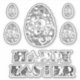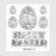 Elegant Grey Silver Look Happy Easter Typography and Easter Eggs Cut Out Stickers, choose matte white or glossy transparent