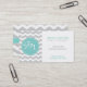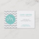 Elegant and trendy grey and white chevron zig zag pattern with monogram business card. Teal blue Circle with dash lines. Perfect for any business. elpmonogram