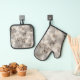Elegant Grey White Gold Wedding Oven Mitt & Pot Holder Set