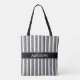 Elegant star pattern on grey and white vertical stripes Tote Bag. Text can be personalised. Beautiful fashion women Tote Bags. Shopping bags. Grocery bags.