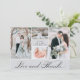 This elegant thank you card features four of your favourite wedding photos, on a chic grey colour with modern typography. There is an option to add a message to the back if you choose.
