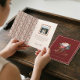 Send love in style with this elegant vintage Valentine’s Day folded greeting card, perfect for family, friends, or anyone you cherish. The front design features our hand-drawn floral bouquet illustrations, paired with “With Love” in a sophisticated handwritten faux-gold script, set against a rich dark red background with a decorative frame for a timeless, luxurious look. The inside showcases a matching floral Valentine pattern and includes a postage-stamp-style frame where you can add a personal photo and heartfelt message, making each card truly unique. Perfect for showing someone how much you appreciate, admire, and love them, this folded greeting card combines artistry, elegance, and personalization in one beautiful package. Design and illustration by ©Moodthology Papery.
