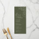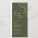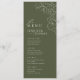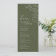 Elegant delicate hand drawn flower illustration and modern script typography details, in dark sage green and white colour, simple and romantic. Great floral wedding menus for modern rustic wedding, country garden wedding, and simple boho wedding in summer and winter.
