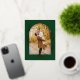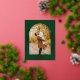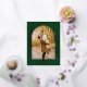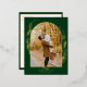 This chic and understated design features a gold foil arch-shaped photo template surrounded by gold hand drawn holly on a dark hunter green background. Includes editable gold foil text fields. The back features complementary graphics, blank element with gold border and additional text fields.