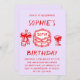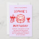 The clean white background and bold red typography create a stylish, contemporary look that works beautifully for both intimate gatherings and lively celebrations. Easily personalize the name, age, date, time, location, and RSVP details to fit your event.