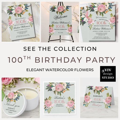 Start this special 100th birthday celebration in a elegant style with this beautifully hand painted paper napkins with colorful yet gentle flowers -- leading with blush pink and greenery, yet adding interesting other touches of color. The text can be personalized for your party including the guest of honor's age. If you have any special requests or require design assistance, just send a chat and we'll be delighted to assist. (The floral artwork is from www.createthecut.com)