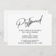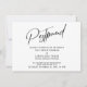 This simple suite's distinction is due to the modern, handwritten script font used for accent phrases. In this piece, the elegant script was used to create a graphic depicting the word "Postponed". Use the template fields to add your personal details and make this modern design your own. The solid background can be changed to any colour you prefer. Please reach out with any special requests or for customising assistance. // 151 //