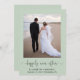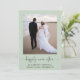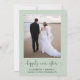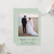Elegant sage green elopement or private wedding announcement and reception invitation that features your photo, "happily ever after" written in a chic script with swashes and your first names, wedding date and location. On the back, personalise your wedding announcement, add a reception or party invitation and sign your married names in a signature-like script.