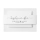 Elegant wedding invitation belly band featuring "happily ever after" in a stylish script with swashes, your names joined together with a heart and your wedding date in simple modern typography.