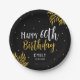 Elegant Happy 60th Birthday Gold Foliage Party Paper Plates. Celebrate a milestone in style with this personalized plates. Featuring a sophisticated black background with luxurious gold foliage, this design adds a touch of class. These plates are perfect for making the guest of honor feel extra special. Make turning 60 unforgettable with this timeless and chic design!