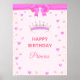 Elegant Happy Birthday Princess & Gems on Pink Poster