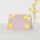 This beautifully crafted Easter card radiates elegance and charm, making it a perfect choice for spreading festive cheer. The front design boasts shiny gold foil details that catch the light and add a luxurious touch. It features intricate floral patterns and two finely decorated Easter eggs, all framing the warm and celebratory "Happy Easter" greeting in a graceful script. The delicate lavender background enhances the opulence of the shiny gold foil, creating a harmonious and sophisticated appearance. Inside, the card continues its thoughtful design with a light yellow background and a heartfelt message in purple text: "Sending wishes your way for a bright and happy Easter Day." Ideal for friends, family, or anyone you cherish, this card is a lovely way to share warm wishes and celebrate the joy of the Easter season.