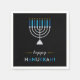 Elegant Happy Hanukkah Black with Silver Menorah Napkin