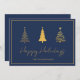 Elegant Happy Holidays Business Blue Card. Featuring modern minimalist Christmas trees. Flit the card to customise the text. Also available as digital download.
