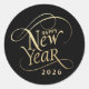 Elegant Happy New Year Black Gold Classic Round Sticker