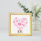 This design for a Valentine's Day card or background, featuring a collection of pink hearts within gold frames.