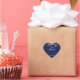 Elegant navy blue wedding stickers with changeable white text in a shape of a heart