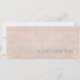 Image of subtle pink champagne glitter texture on soft lavender linen makes a sophisticated gift voucher perfect for those special occasions or holidays.