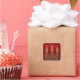 Elegant Merry Christmas / Happy Holidays "Sticker Seal" Gold Trees with bows on red.
