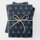 Modern and stylish, Christmas trees, snowflakes and "Cheers" wrapping paper in navy blue. Christmas tree design of gold squares and geometric tile pattern, decorative gold snowflake wrapping paper combination.