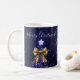 Elegant Holiday Navy Christmas Trees Bows Gold Coffee Mug