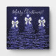 Elegant Holiday Navy Christmas Trees Silver Bows Plaque