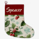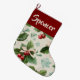 "Celebrate the season in style with this Elegant Holiday Pattern Christmas Stocking, featuring lush green leaves, bright red cherries, and delicate pink pastel bows. Its sophisticated and whimsical design adds a festive yet refined touch to any mantel, staircase, or holiday display. Add a name to make this stocking a unique and treasured keepsake for children, family members, or friends. Personalization makes holiday traditions extra special year after year."