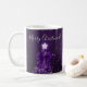 Elegant Merry Christmas / Happy Holidays mug with Purple trees and bows.
