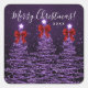 Elegant Holiday Purple Christmas Trees Bows Red Square Sticker