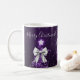 Elegant Merry Christmas / Happy Holidays mug with Purple trees and bows.