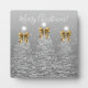 Elegant Holiday Silver Christmas Trees Gold Bows Plaque