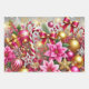 Add a touch of elegance and cheer to your holiday gifts with this vibrant Christmas wrapping paper. Featuring a delightful mix of pink poinsettias, golden ornaments, candy canes, and shimmering bows, this design radiates joy and sparkle. Perfect for making your presents stand out under the tree.