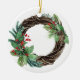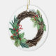 ELEGANT HOLLY BERRY RED GREEN JOY WREATH CHRISTMAS CERAMIC TREE DECORATION