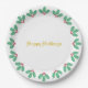 Elegant Holly berry wreath on white background paper plate. Golden Happy holidays text can be customised. Ideal for Thanksgiving and Christmas seasons!