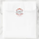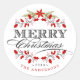 Round Envelope Sealing Stickers and labels for Holiday Christmas Cards -- Beautiful red poinsettia, holly wreath design on snowy white background and black retro letterpress style decorative typography and curved text. Elegant vintage style Merry Christmas holiday stickers for greeting cards, seasonal party invitations, or gift tags. Add your family name or personalised message text. Bright and cheerful classic, modern and stylish way to send trendy happy winter holiday greetings to all your friends and family with unique but rustic traditional charm.