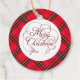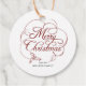 This elegant Christmas favour tag features a beautifully calligraphed "Merry Christmas" message surrounded by decorative swirls. A sprig of holly with berries adds a festive touch.