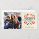 Elegant vintage style Merry Christmas holiday greetings with photo template on beautiful red holly wreath design on ivory parchment background and black retro letterpress style decorative typography. Add your favourite holiday family picture and customise the text. Bright and cheerful contemporary, classic, modern and stylish way to send happy winter holiday greetings to all your friends and loved ones with unique but trendy traditional charm. Matching postage, holiday party invitations, and photo greeting cards available upon request.