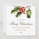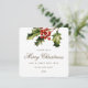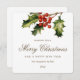 Elegant botanical holiday card featuring a watercolor painting of holly and red berries on a plain white background. Easily personalise this beautiful holiday card with your family name and the year. The background can be changed to any colour.