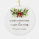 Add timeless holiday charm to your tree with this elegant Christmas ornament featuring watercolor holly leaves, bright red berries, and a festive red bow. A beautiful keepsake that captures the warmth and joy of the season, this ornament makes a perfect gift for family, friends, or holiday party hosts. Personalise it to create a unique decoration that will be cherished for years to come.