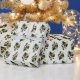 Festive holly leaves and bright red berries on an ivory linen texture background, perfect for holiday gift wrapping.