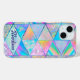 Elegant hologram girly colourful geometric iPhone 15 Case. To make it extra special, it is also monogrammed and personalised with name or initials or any text you like, click the "customise further" link and use the design tool to modify the design if you like.